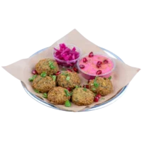 6 adet felafel topları, lahana turşusu, tahin sos ile servis.