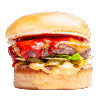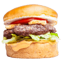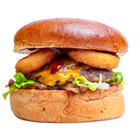 Brioche ekmek, Burger sos, soğan reçeli, marul, peynir, 3 adet soğan halkası, bbq sos.